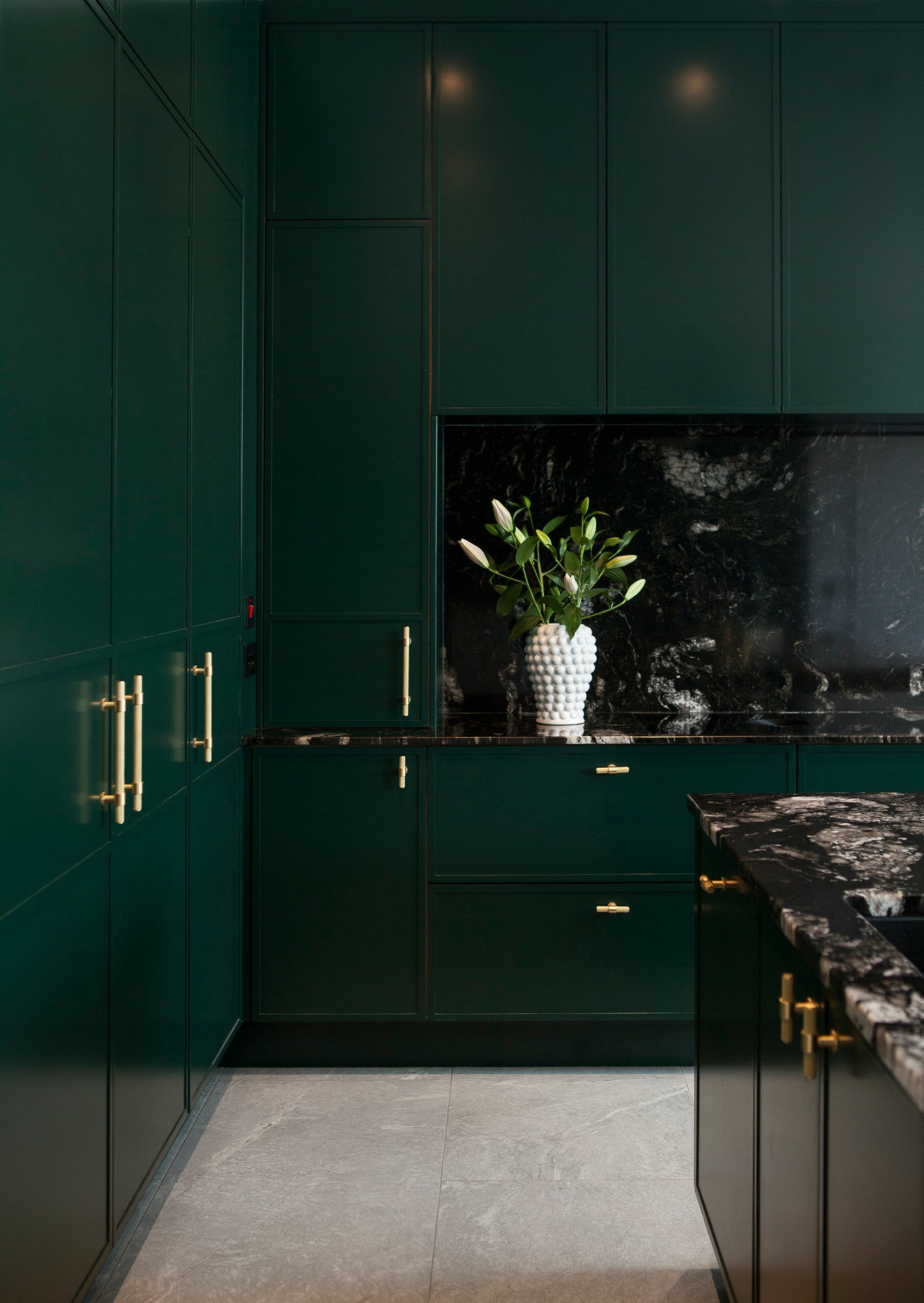 This colour scheme works really well with The Belgravia Collection finished in Satin Brass Lacquered. The Belgravia adds intricate detail in the knurling which reflects light off each individual surface, which pairs wonderfully with the darker tones.