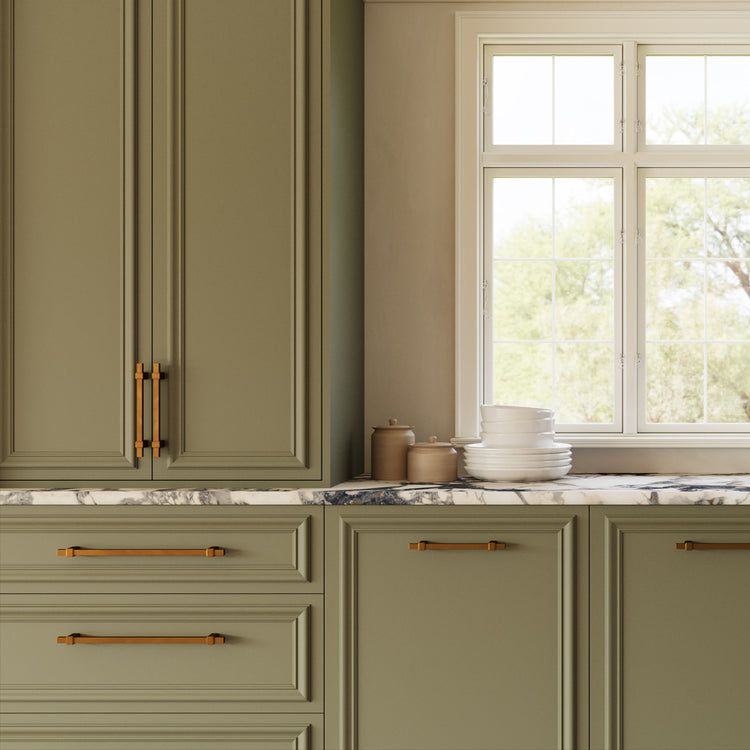 With its sophisticated curve and elegant proportions, Greenwich works seamlessly painted shaker cabinetry.